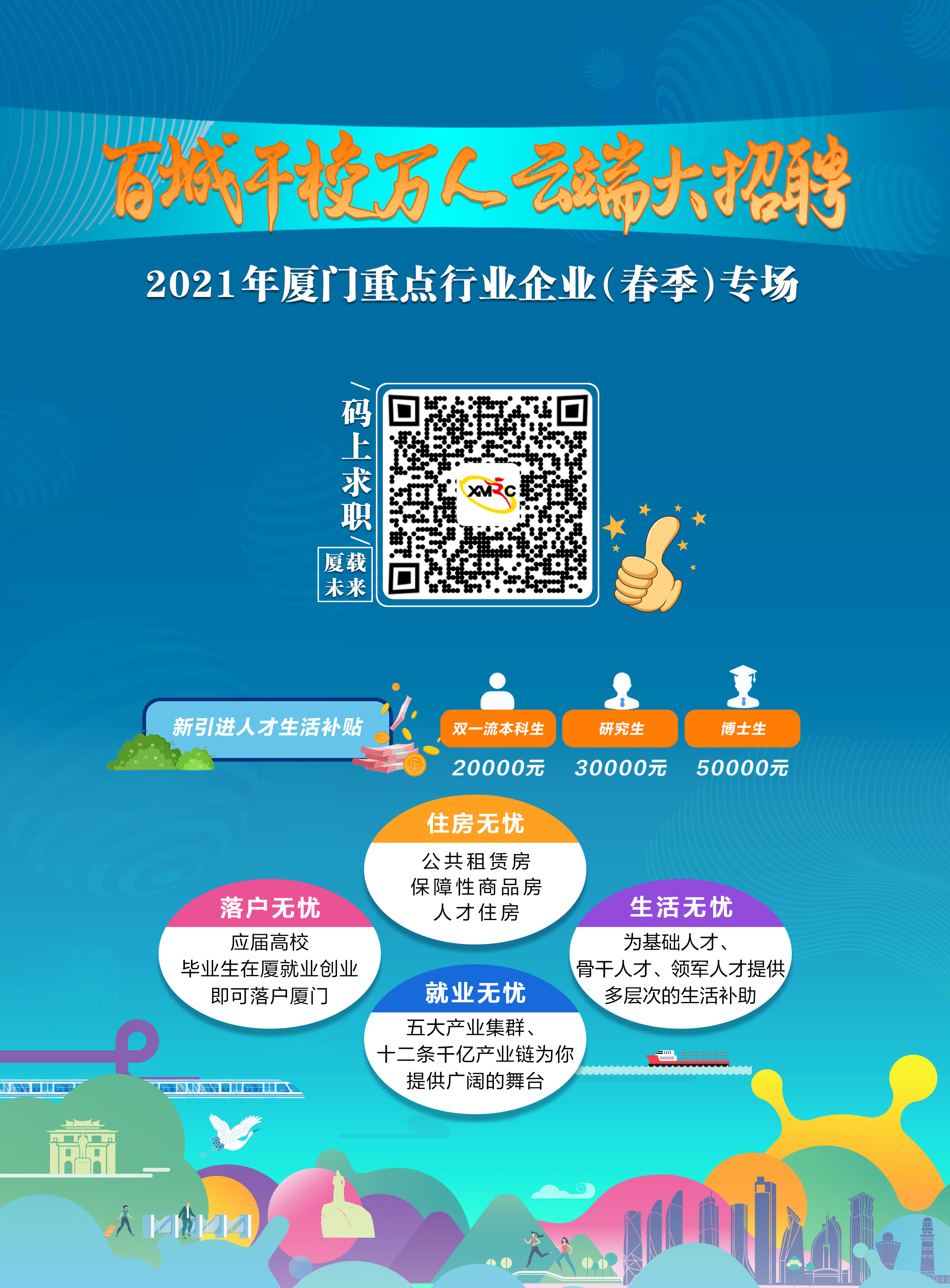 由厦门市人才服务中心开展“百城千校万人 云端大招聘”2021年厦门重点行业企业(春季)专场招聘会