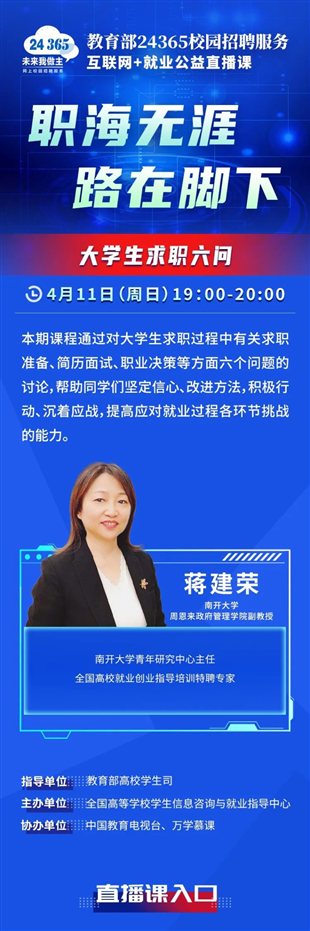 课程预告 | 教育部24365就业公益直播课:职海无涯 路在脚下——大学生求职六问