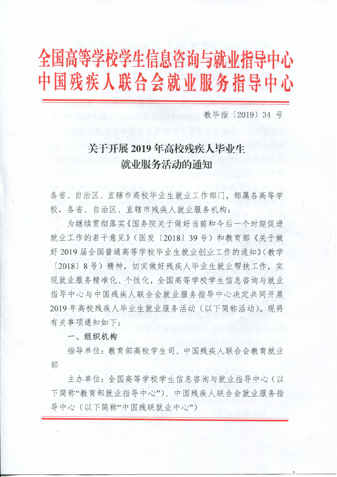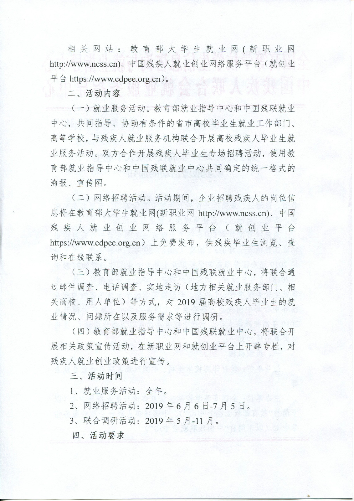 全国高等学校学生信息咨询与就业指导中心关于开展2019年高校残疾人毕业生就业服务活动通知