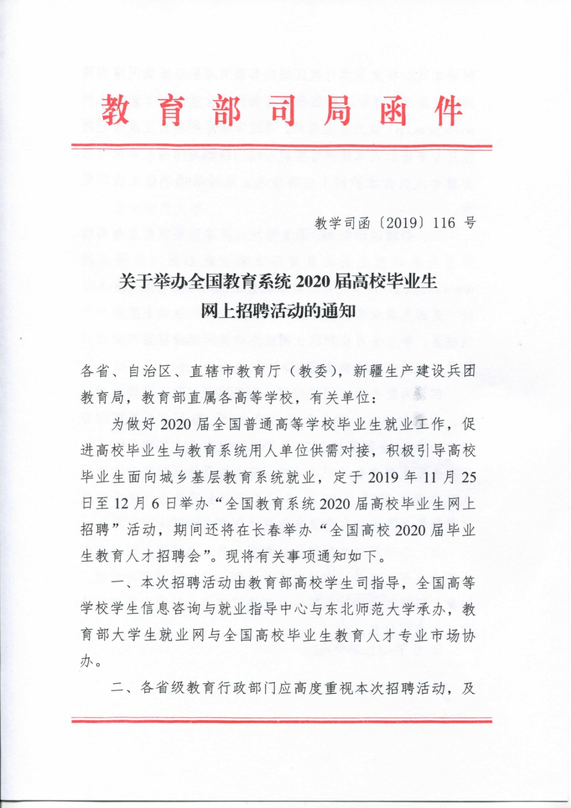 关于举办全国教育系统2020届高校毕业生网上招聘活动的通知
