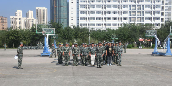 男生总是比较顽皮些,由于贪玩总是练不好被教官拉出来加练中。