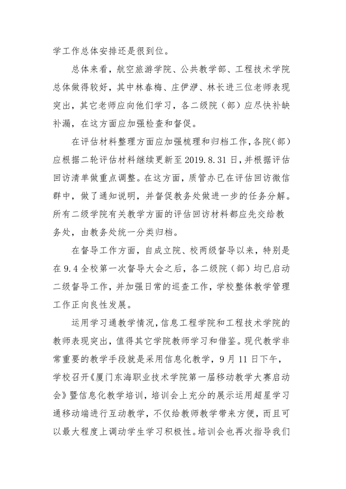 东海职院质管[2019]4号——2019-2020学年第一学期期初教学检查情况总结