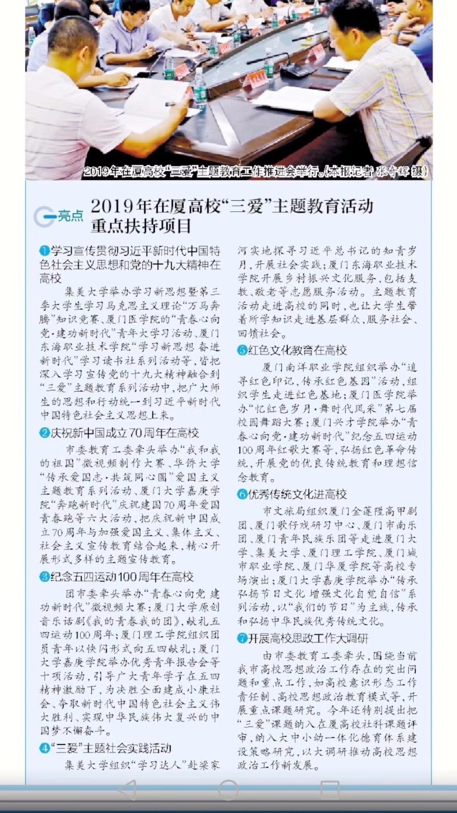 东海学院2个项目入选厦门市委宣传部2019年在厦高校“三爱”主题教育活动 重点扶持项目