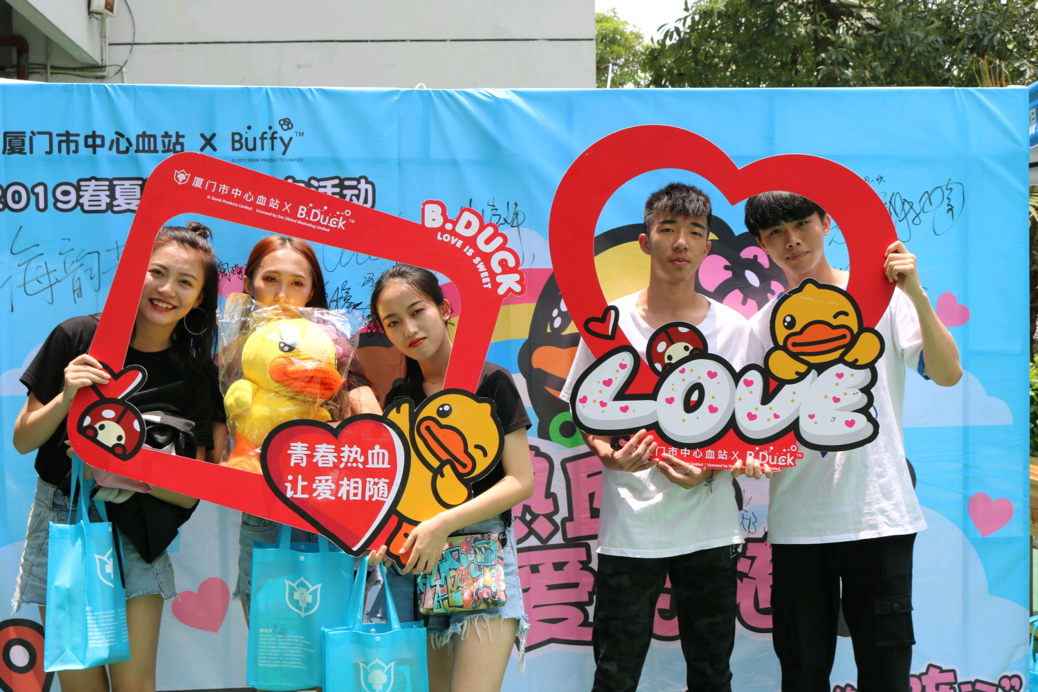 6月5日,由厦门中心血站主办,永利官网团委承办,晨枫广播站协办的“鸭妹妹来了,献血‘逗阵行’”第十二届无偿献血活动在中庭广场举行。此次活动共有156人参与,累计献血量达到42950ml。