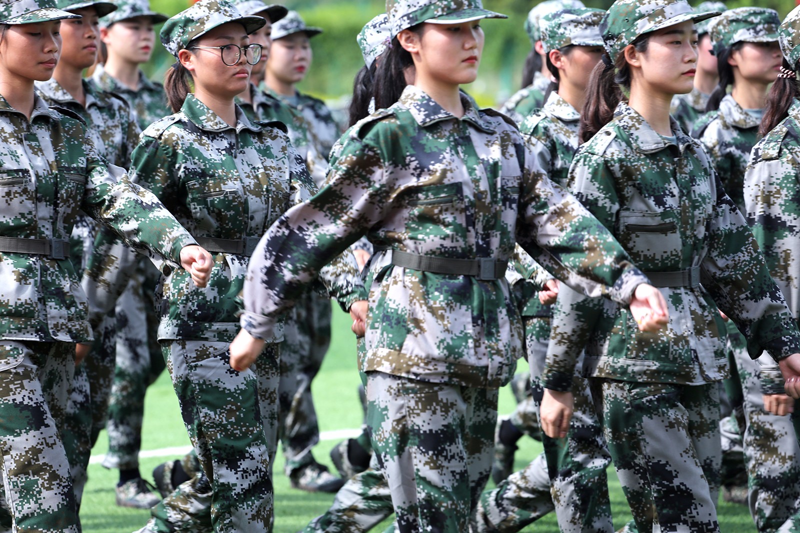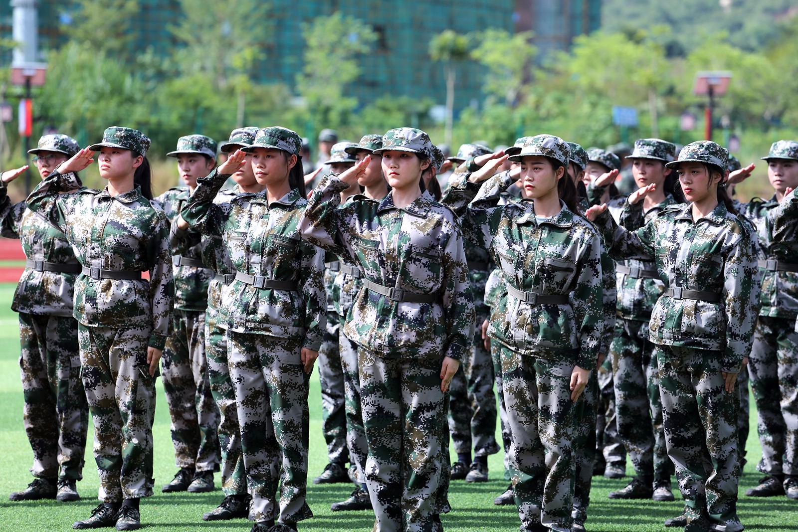 仪式中最精彩的环节要数军训成果展示了,随着整齐的步伐声及嘹亮的口号声传来,我们迎来了八连的队列表演,这支队伍由清一色女生组成,立正、稍息、踏步、敬礼……,每一个动作整齐划一,铿锵有力,展示着巾帼风貌。