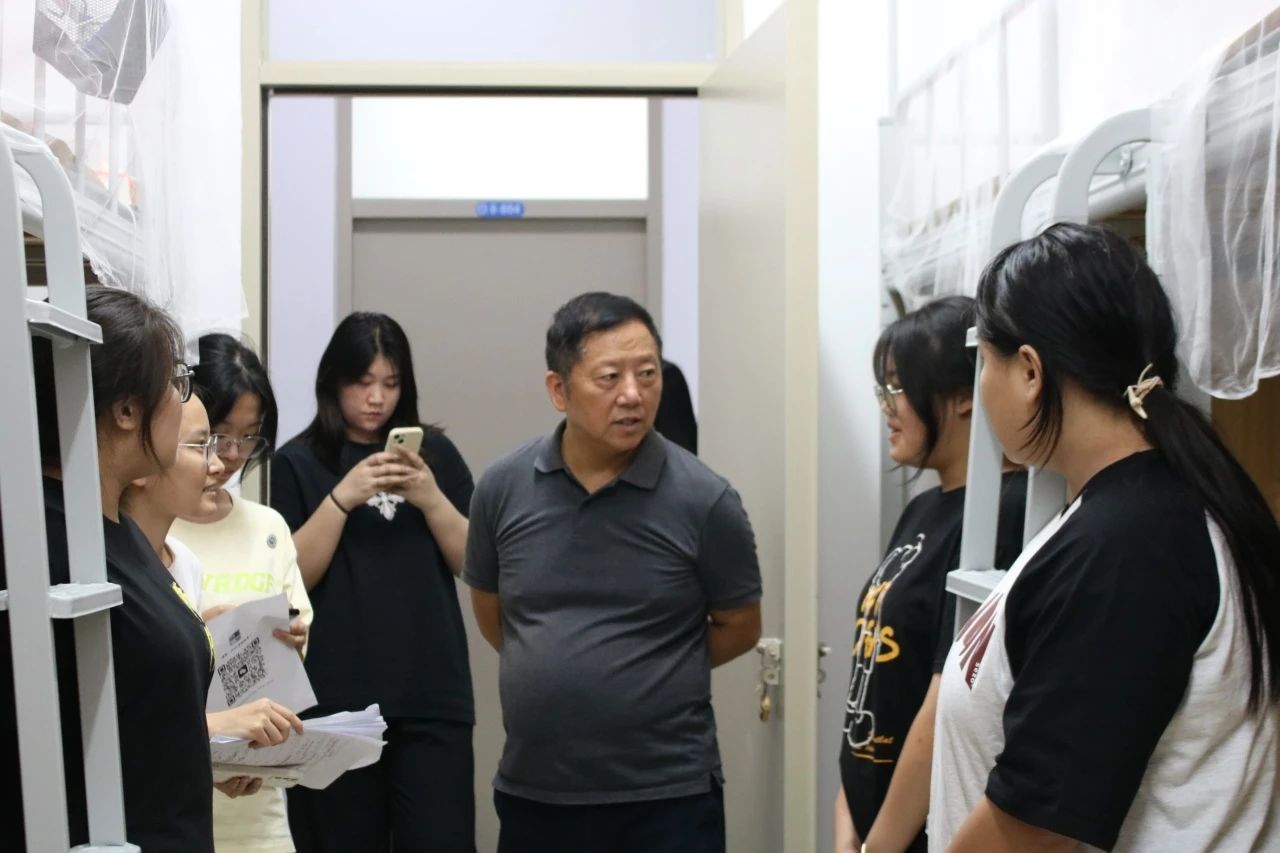 为深入了解新生入校情况,掌握学生的思想和心理动态,解决学生住宿生活问题,9月2-3日,学校副校长周琦、教务处张艳雯处长、数字信息工作处陈志新处长、教师教育学院施茂枝院长、院长助理曾丽燕老师以及辅导员们一行深入学生宿舍走访。过程中,各级领导和老师们亲切地与学生进行交流,简要介绍了学校及院系的情况,认真听取了学生各方面意见和建议,并就相关问题进行了交流讨论,同时针对大家共同关心的学习生活上的问题提出了建议。施茂枝院长指出,同学们在努力学习专业知识的同时,应当多注重个人整体素质的发展,积极参与校园生活实践,将来可为社会做出有益的贡献;同时嘱咐新生有任何困难或突发情况及时向辅导员反映。