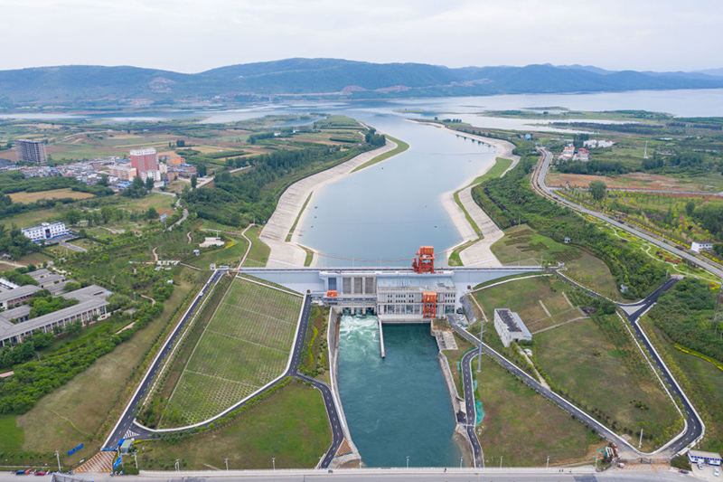 这是2021年5月20日在河南省南阳市淅川县拍摄的南水北调中线工程陶岔渠首(无人机照片)。(新华社记者 才扬/摄)