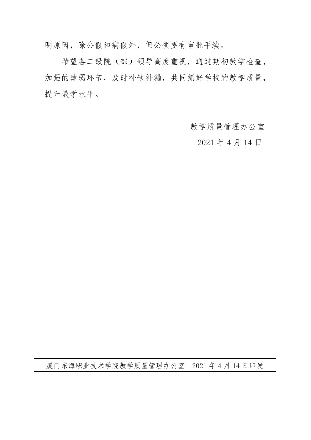 东海职院质管〔2021〕7号 开展2020-2021学年二学期期中教学检查评比的通知