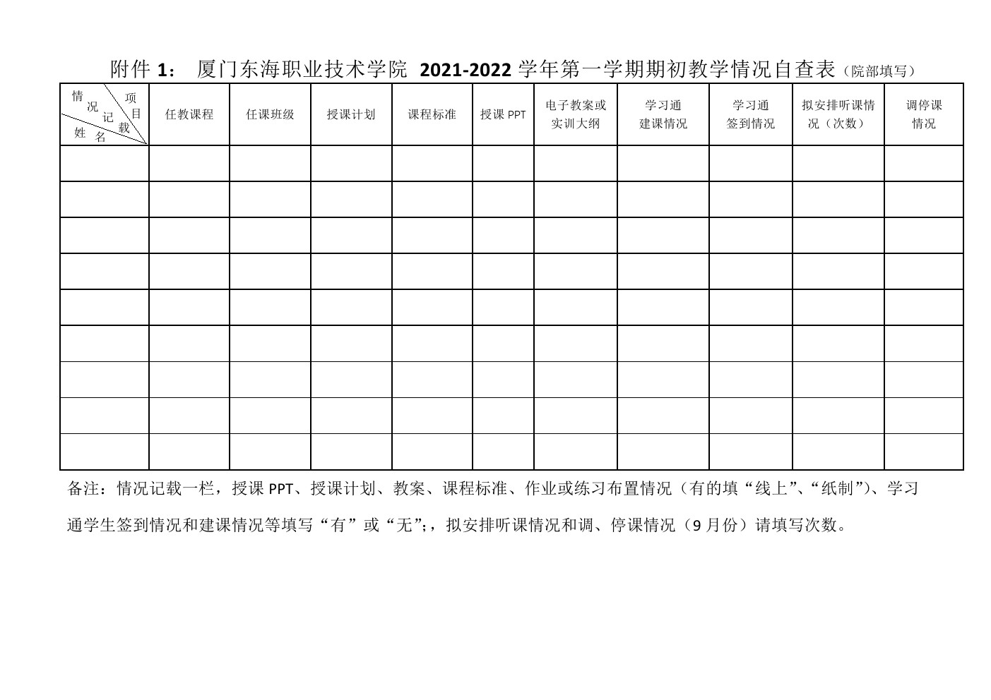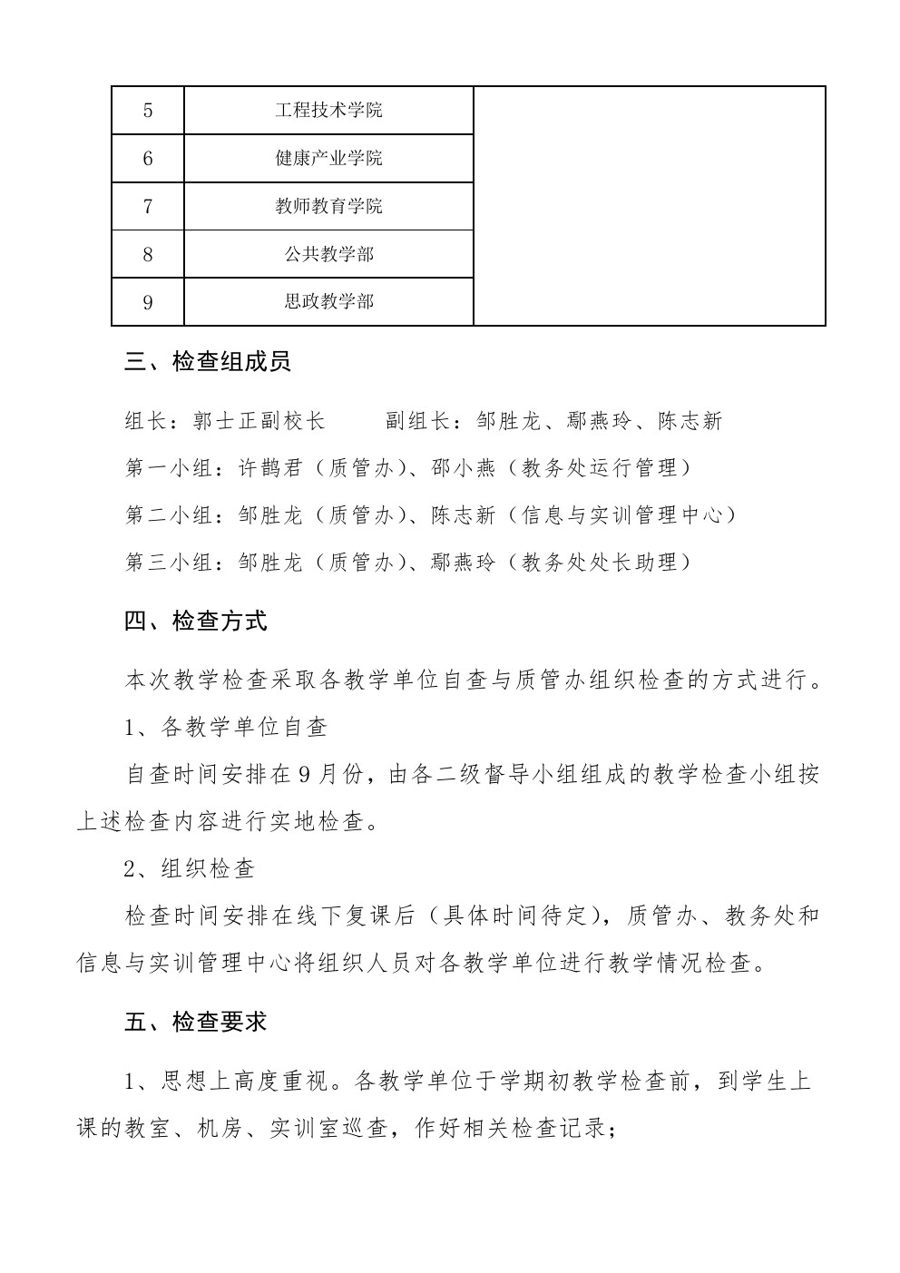 东海职院质管〔2021〕15号 开展2021-2022学年第一学期期初教学检查的通知
