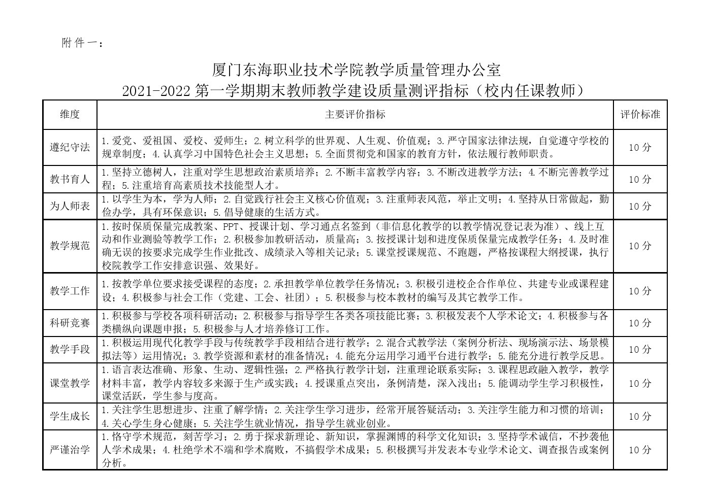 东海职院质管〔2021〕22号 关于开展2021—2022学年第一学期期末《教师教学建设质量测评》的通知