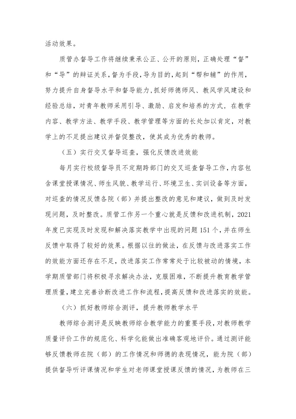 东海职院质管〔2022〕1号 2021-2022学年第二学期教学质量管理办公室工作计划