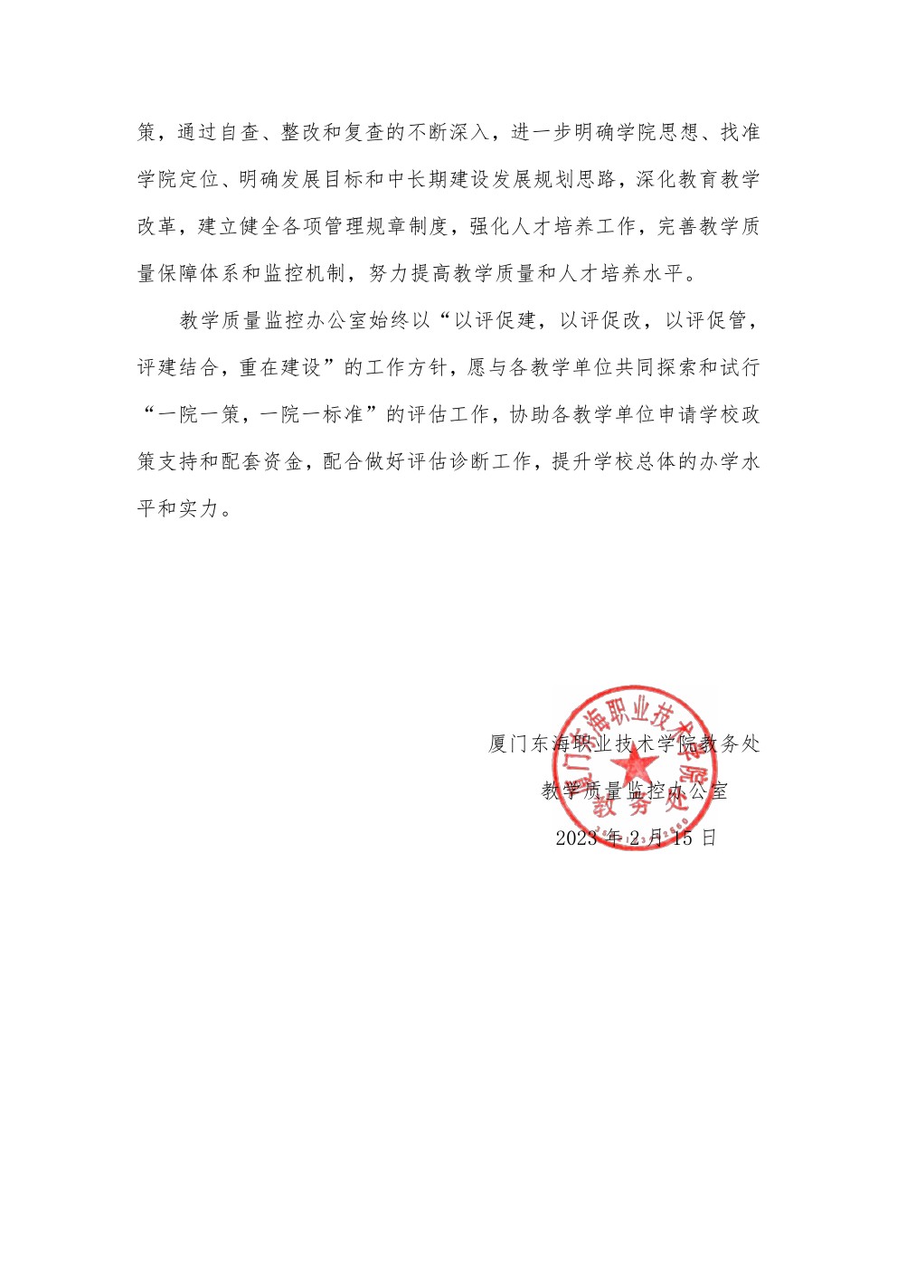 东海教字〔2023〕002号 2022-2023学年第二学期教学质量监控办公室工作计划
