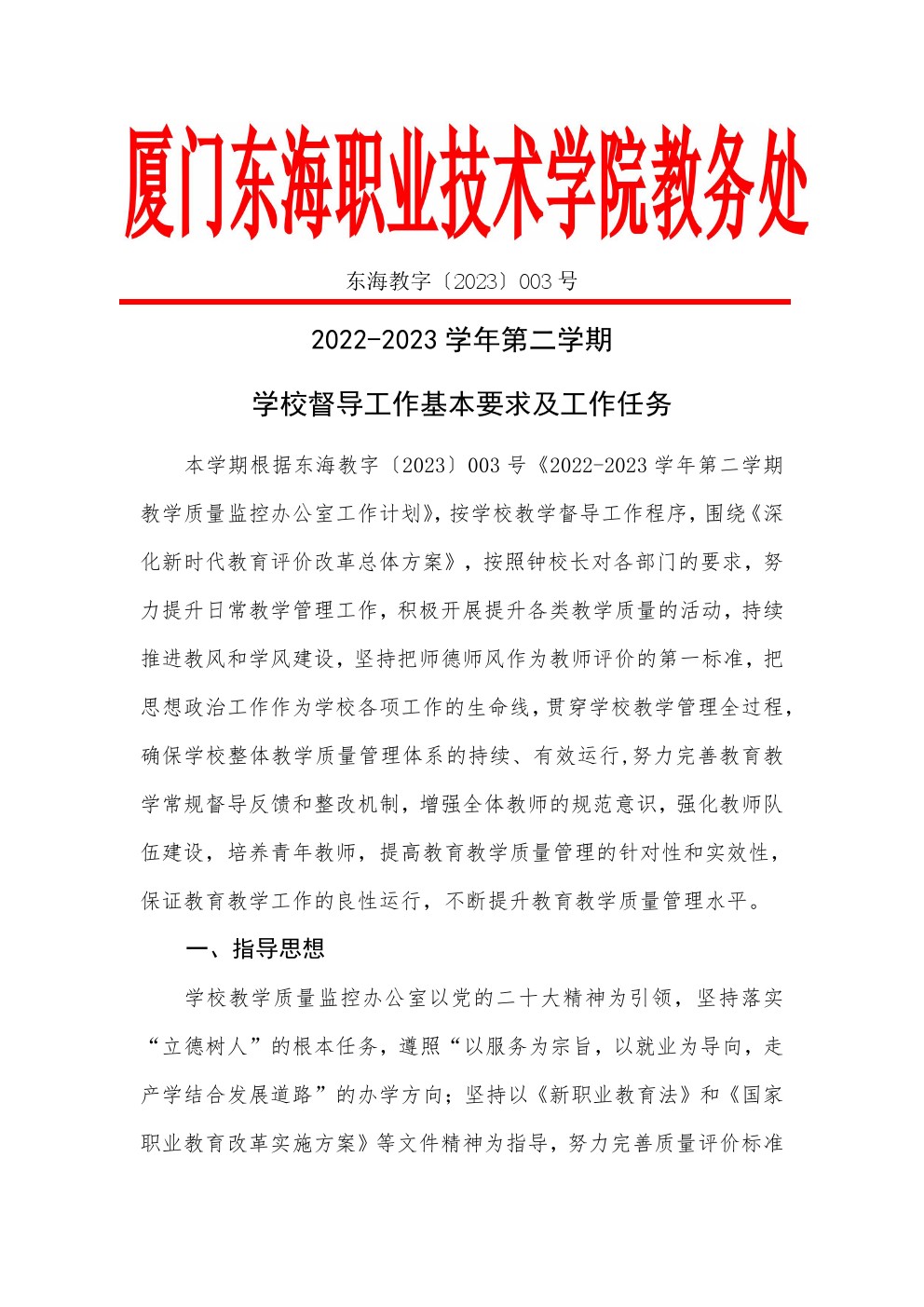 东海教字〔2023〕003号 2022-2023学年第二学期学校督导工作基本要求及工作任务