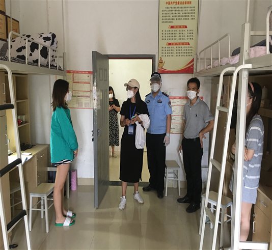 疫情防控期间,进宿舍关爱、慰问学生。