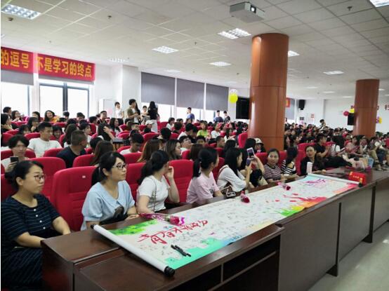 中午11点,精心布置的报告厅会场也陆续出现了毕业生的身影,,迈着自信的步伐走向签名簿,认真地签下自己的名字,为昔日难忘的校园生活画上一个完满的句号,同时也怀着激动与感恩的心情翻开了人生新的篇章。