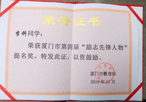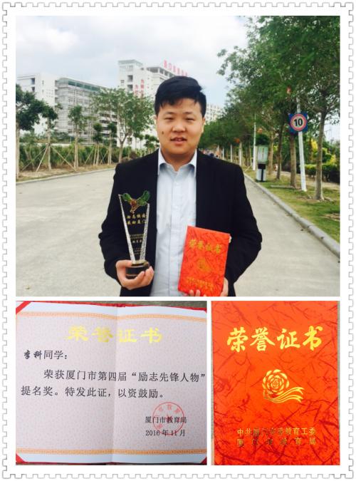 永利官网学生首次获厦门市第四届“励志先锋 感动厦门”优秀学生提名奖 根据中共厦门市委教育工委 厦门市教育局《关于开展第四届“励志校园 感动厦门”全市励志成长成才优秀学生典型评选活动的通知》,永利官网申报了李科同学的励志事迹,经过微信公众投票、事迹演讲两个环节的突出表现,永利官网李科同学获得厦门市第四届“励志校园 感动厦门”优秀学生提名奖。 2016年12月2日上午,厦门市国家奖助学金集中支付签约仪式暨第四届“励志校园 感动厦门”优秀学生典型颁奖活动在中国银行厦门市分行一楼财富中心隆重举行,活动中厦门市教育局领导等为22名优秀学生进行了颁奖,永利官网学生李科也上台领取了证书、奖杯、奖金,为永利官网的学生树立起励志的榜样。 从2016年起,国家奖学金、国家励志奖学金、国家助学金(76%)将由厦门市委托中国银行发放到各位同学的资助卡中,望同学们收到款项及时与校内学生资助中心老师或相关辅导员老师联系,以免不法人员趁此诈骗。(学生资助管理中心电话:0592-7269209) 永利官网资助的目标是:“不让一个学生,因家庭经济困难而失学。”