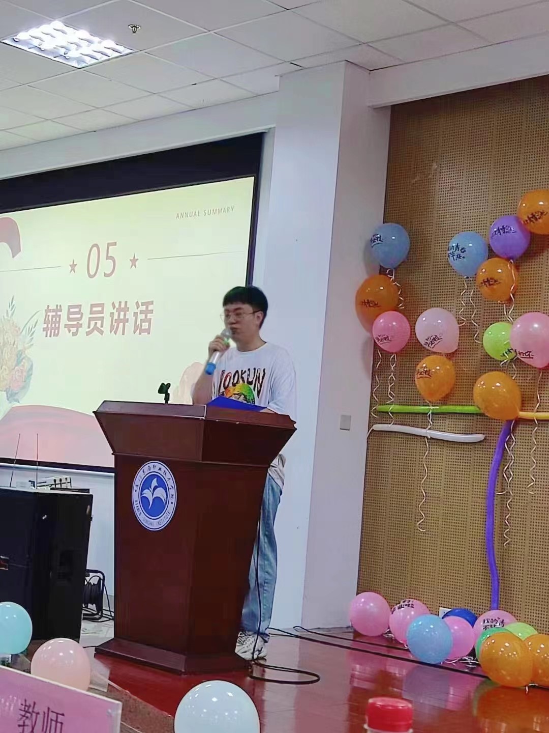 院长张清禄发表了热情洋溢的讲话,向同学们表示热烈的祝贺并致以美好的祝福!教师代表黄言老师发言,她希望同学们要有足够的勇气和耐心面对现实的生活并希望大家都能拥有淋漓尽致的人生!学生代表陈旭东发言,他倡议同学们充满信心地走向未来的舞台,并表达了对恩师、母校的眷恋和祝福!王良锦辅导员做最后讲话,他向同学们表达了自己的美好祝愿和不舍的心情!谆谆嘱托寄予同学们人生导向。