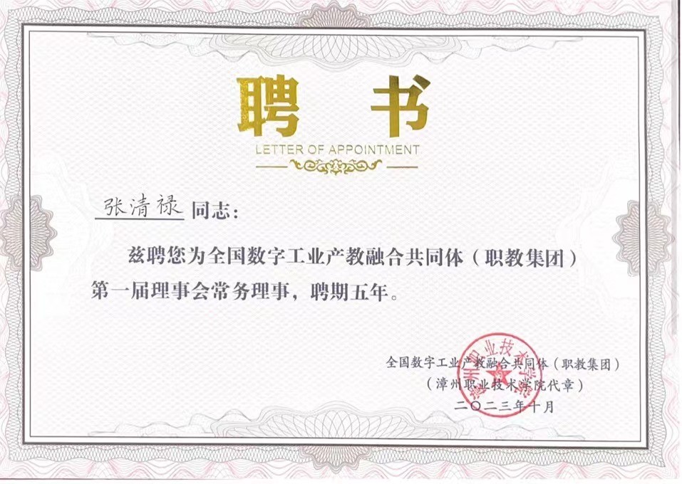 祝贺:张清禄院长当选为全国数字工业产教融合共同体第一届理事会常务理事