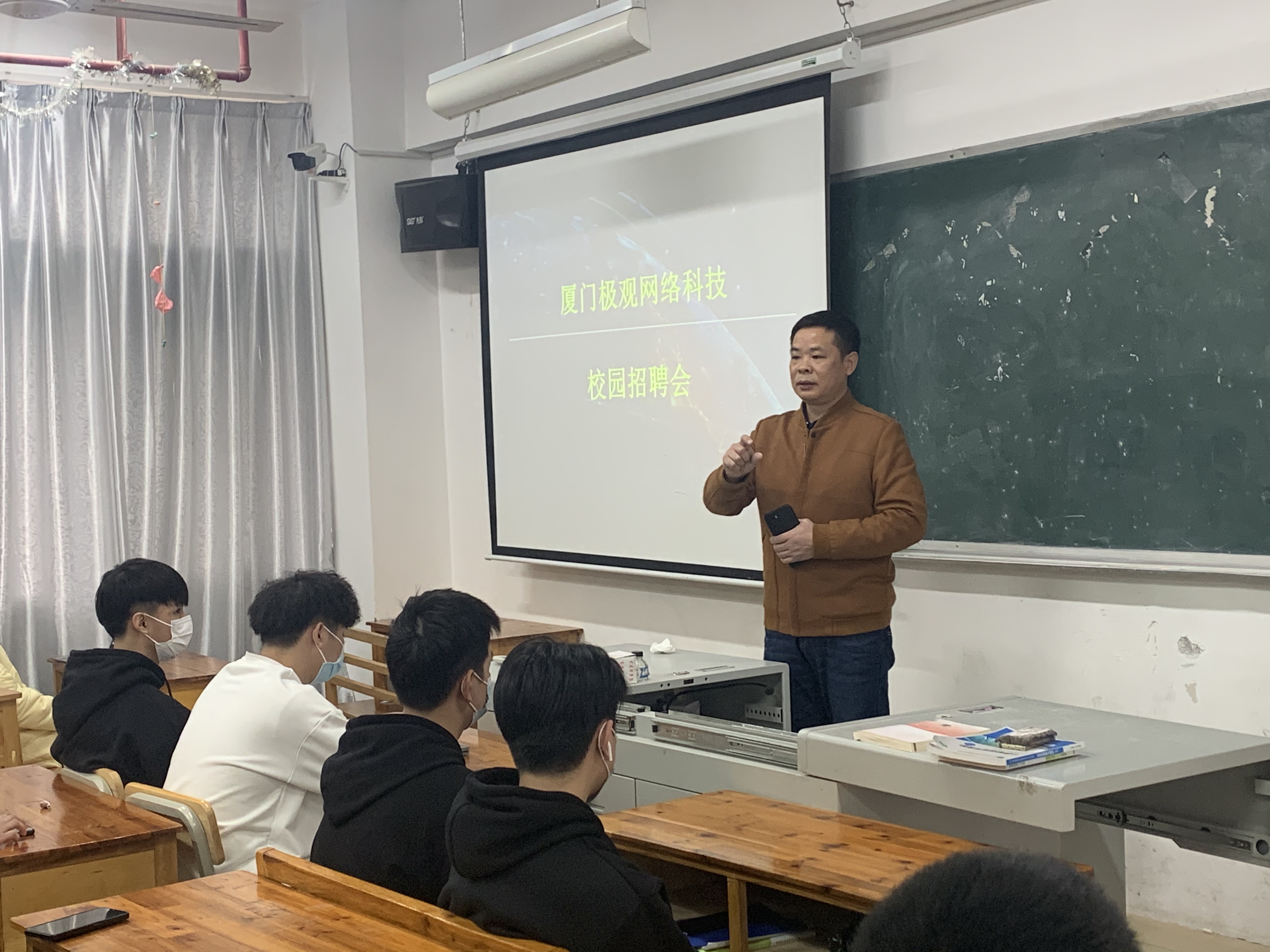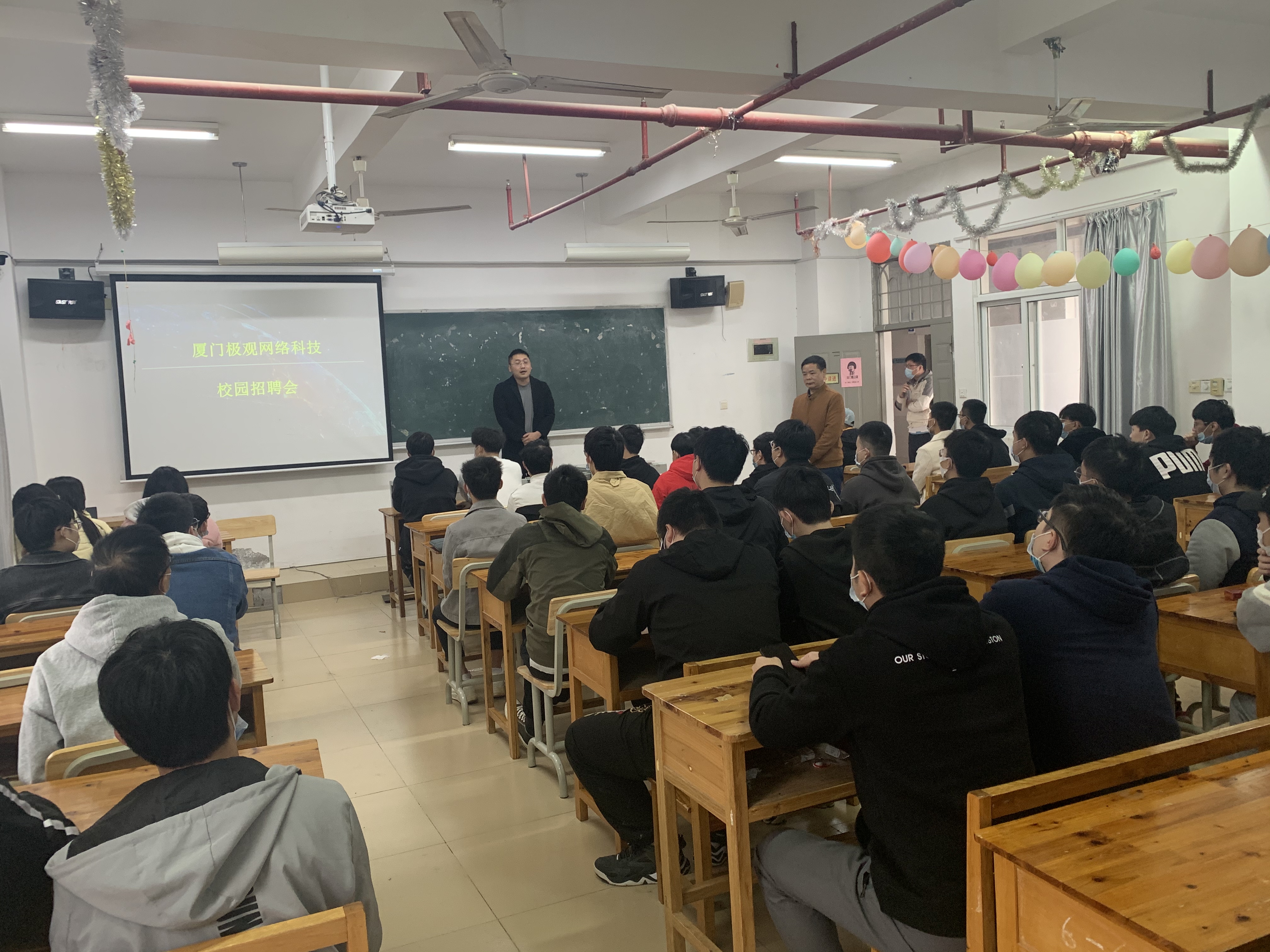 2021年12月27日下午,厦门极观网络科技有限公司在我院召开专场校园招聘会。本次招聘会首先由厦门极观网络科技有限公司王金龙总经理向在场同学简单介绍厦门极观网络科技有限公司企业历史、规章制度、福利待遇、企业文化、招聘岗位等几个方面,并现场解答了同学们的疑问。王总经理真诚的邀请我院的同学们加入厦门极观网络科技有限公司实现自己的梦想!宣讲结束后,同学们也对厦门极观网络科技有限公司的各项信息和文化理念有一定的了解。本次共有60多位同学参加招聘会。
